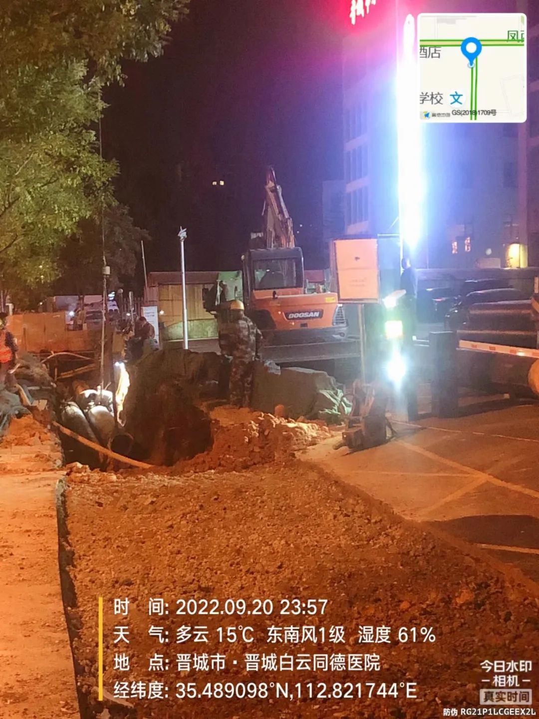 9月20日夜间,走航人员对市区国控点周边进行走航排查,发现未严格落实“六个百分百”扬尘污染防治措施施工工地2处,分别为凤城路(德源凤城门口)管道施工工地、松柏街-凤栖路道路施工工地。